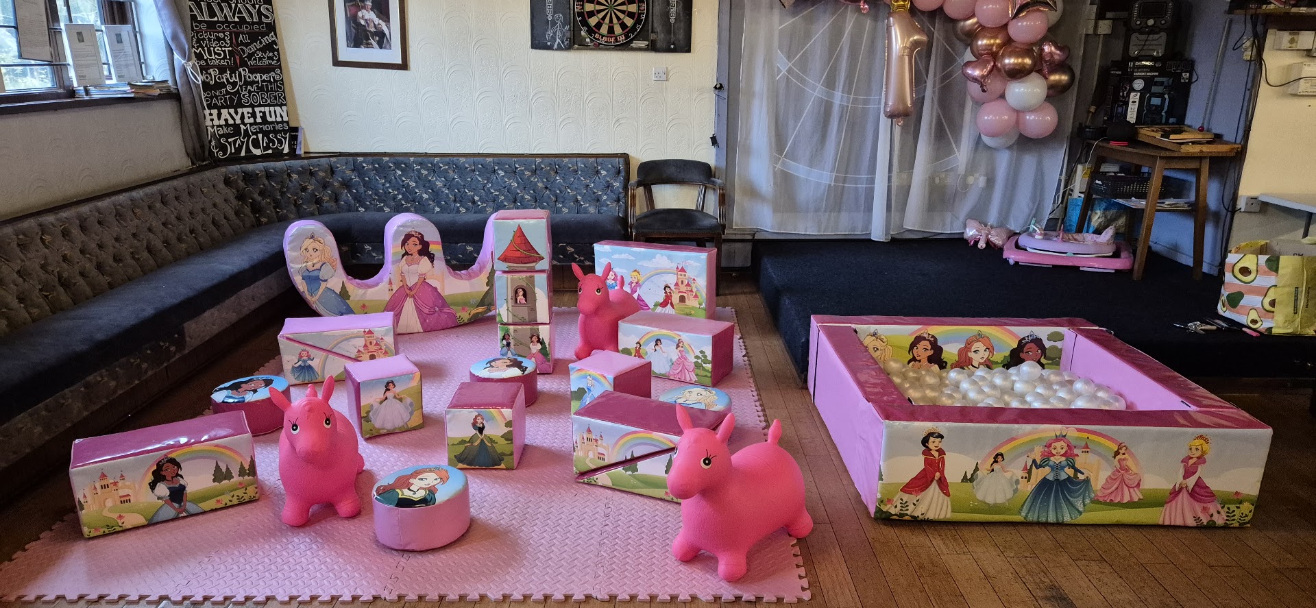 - Princess Carriage Soft Play with Majestic Horses: Transform your party into a royal adventure with our soft play horse companions and a stunning ball pool.