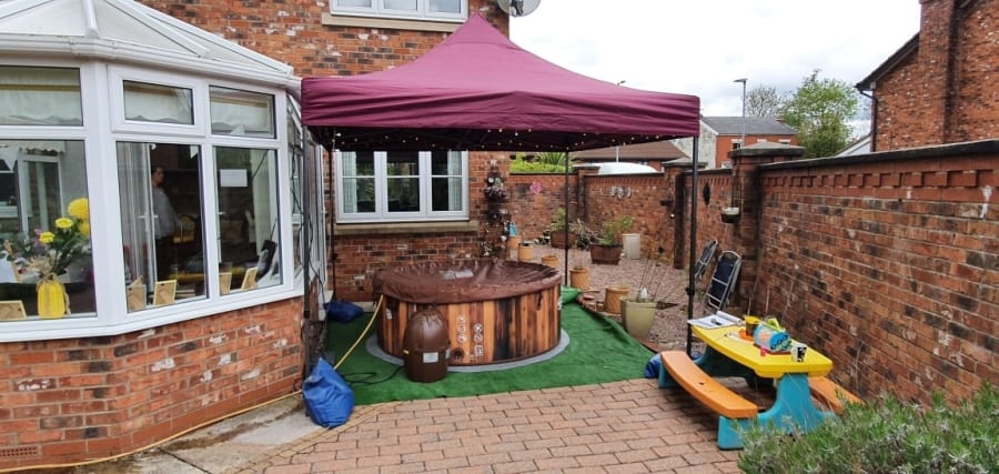 Luxuriate in Tranquility: 7 Person Hot Tub with Premium Gazebo, Flooring & Lighting Package for Hire in Tameside, Greater Manchester, Stockport, Oldham, Altrincham, Wilmslow.