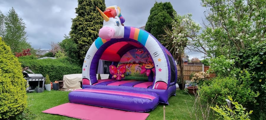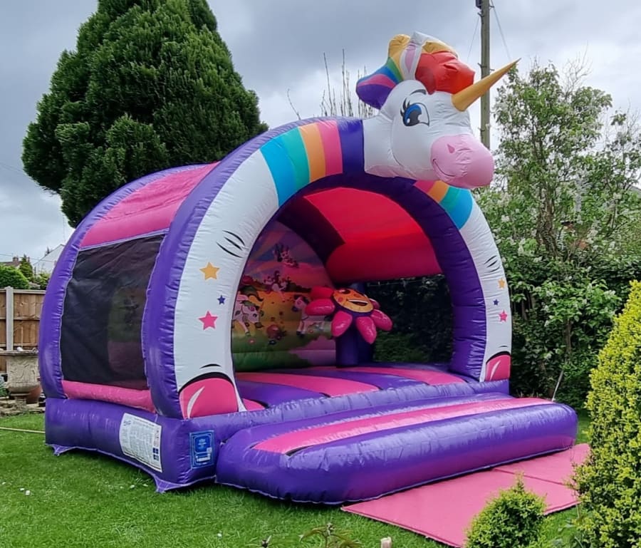 Welcome to the Enchanting Realm of Unicorn Magic with Born 2 Bounce - Your Premier 3D Unicorn Bouncy Castle Hire in Stockport, Manchester, Tameside, Oldham, Wilmslow, and Altrincham!