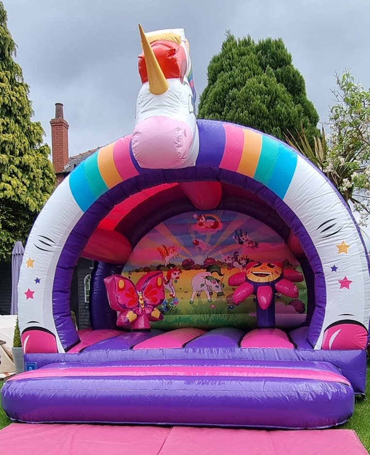 🦄 Immerse your child's unicorn-themed party in pure magic with our dazzling 3D Unicorn Bouncy Castle! Available for hire in Stockport, Manchester, Tameside, Oldham, Wilmslow, and Altrincham, this vibrant inflatable will infuse joy and excitement into every celebration.