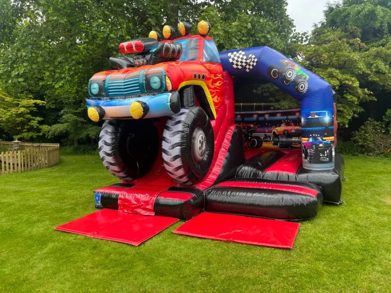 Embark on a Thrilling Adventure with Our New for 2025, 3D Monster Truck Bouncy Castle/Slide Combo – Available for Hire.