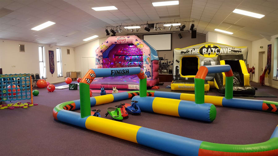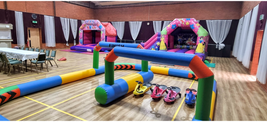 Our fantastic party package includes everything you need to create a memorable event. With any children's disco bouncy castle and a children's castle/slide combo, the little ones will have endless hours of fun bouncing and sliding. But that's not all! We also provide a racing track complete with 4 didi cars for even more excitement (please note, if your event is outdoors, the cars will be replaced with space hoppers).