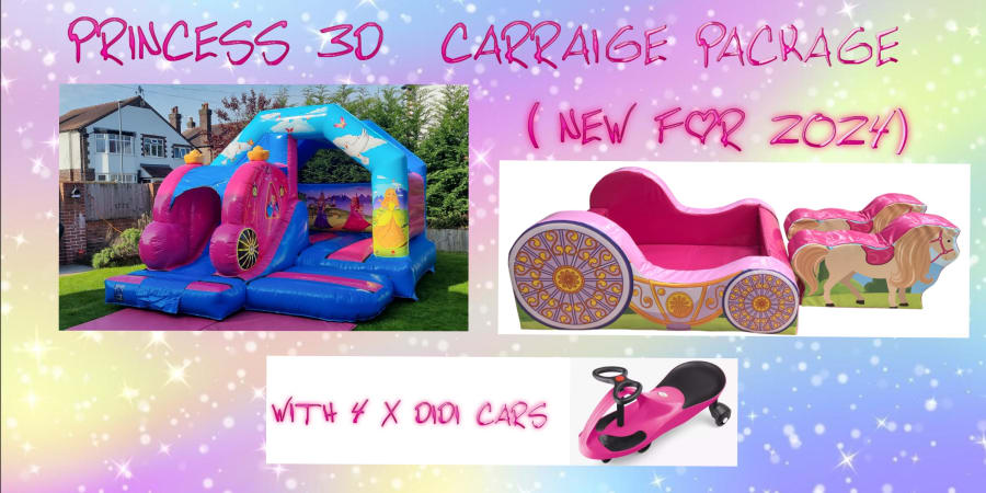 Make your little princess’s fairy-tale dreams come true with our Princess Party Package, the ultimate choice for a magical, indoor celebration! This stunning package combines our 3D Princess Carriage Bouncy Castle Slide Combo with a Princess Carriage Soft Play Ball Pool, 2 Majestic Soft Play Horses, and 4 Pink Didi Cars, delivering endless fun and enchantment for children of all ages. Perfect for princess-themed birthday parties, christenings, or any royal occasion, this indoor bundle is sure to captivate your little one and their friends.