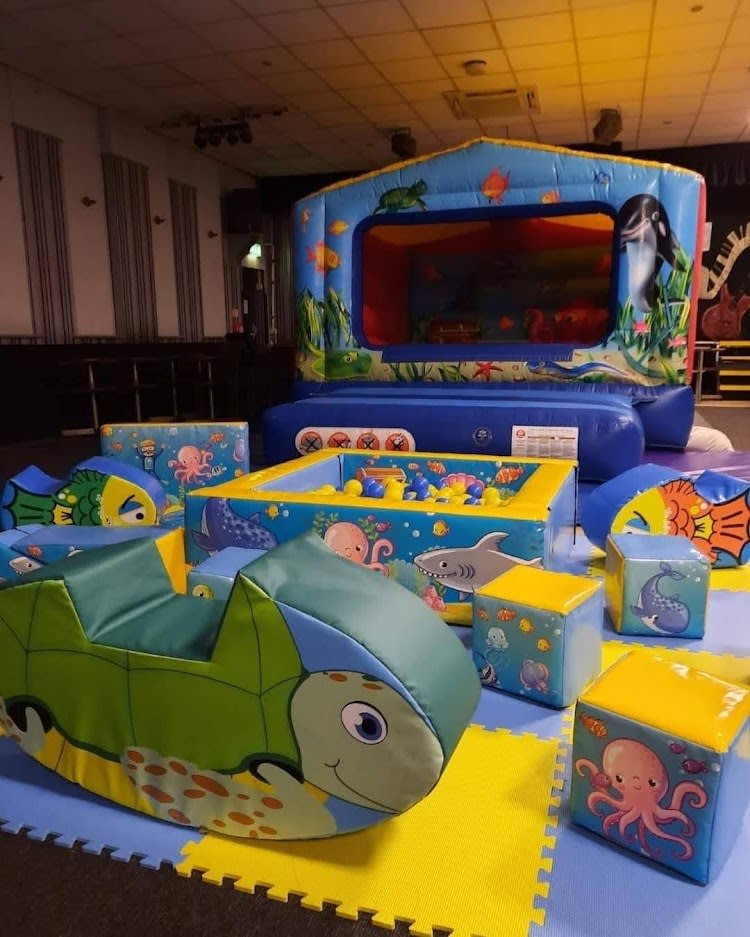 Under The Sea 20 Piece Soft Play Set with Matching Ballpool and Bouncy Castle Hire