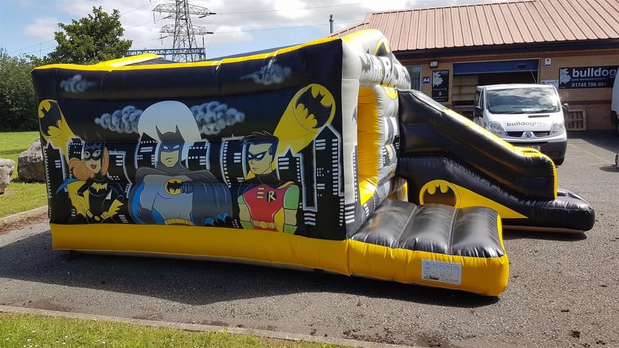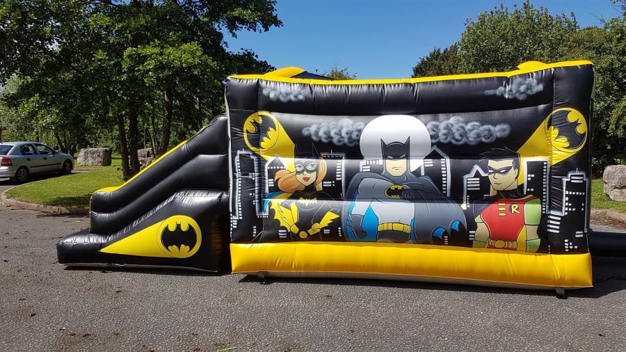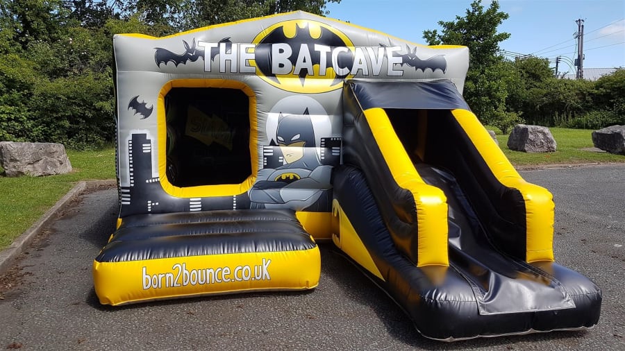 🦇 Gotham Adventure Awaits: Bat Cave Bouncy Castle/Slide Combo Hire in Stockport, Tameside, Manchester, Wilmslow, Altrincham, and Oldham! 🌃⚔️