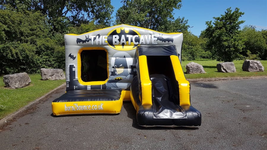 Born 2 Bounce proudly presents every little Batman fans perfect castle/slide combo, this amazing hand painted castle is like no other...