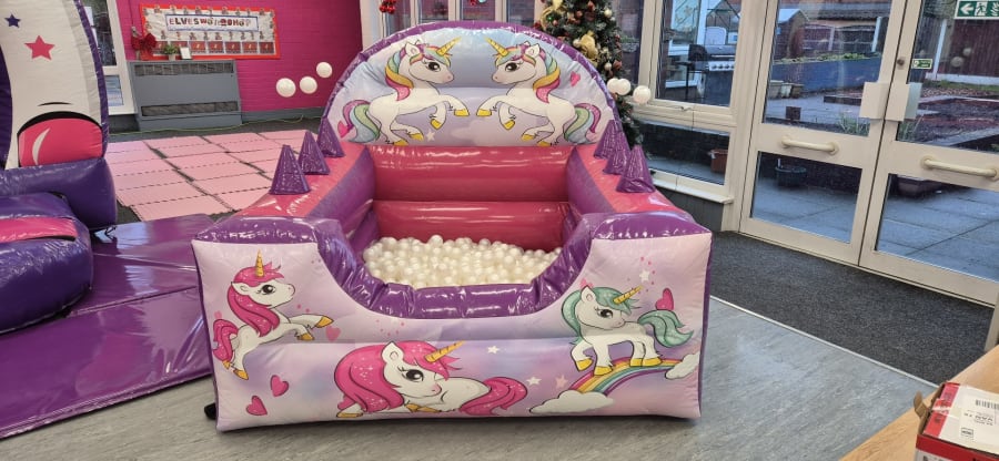 • Unicorn Wonderland Soft Play Hire: Featuring numerous soft play shapes, an inflatable ball pool with air jugglers for sensory fun, and three adorable unicorn hoppers. This soft play hire is the perfect addition to keep little ones engaged and entertained. (Indoor hire only).